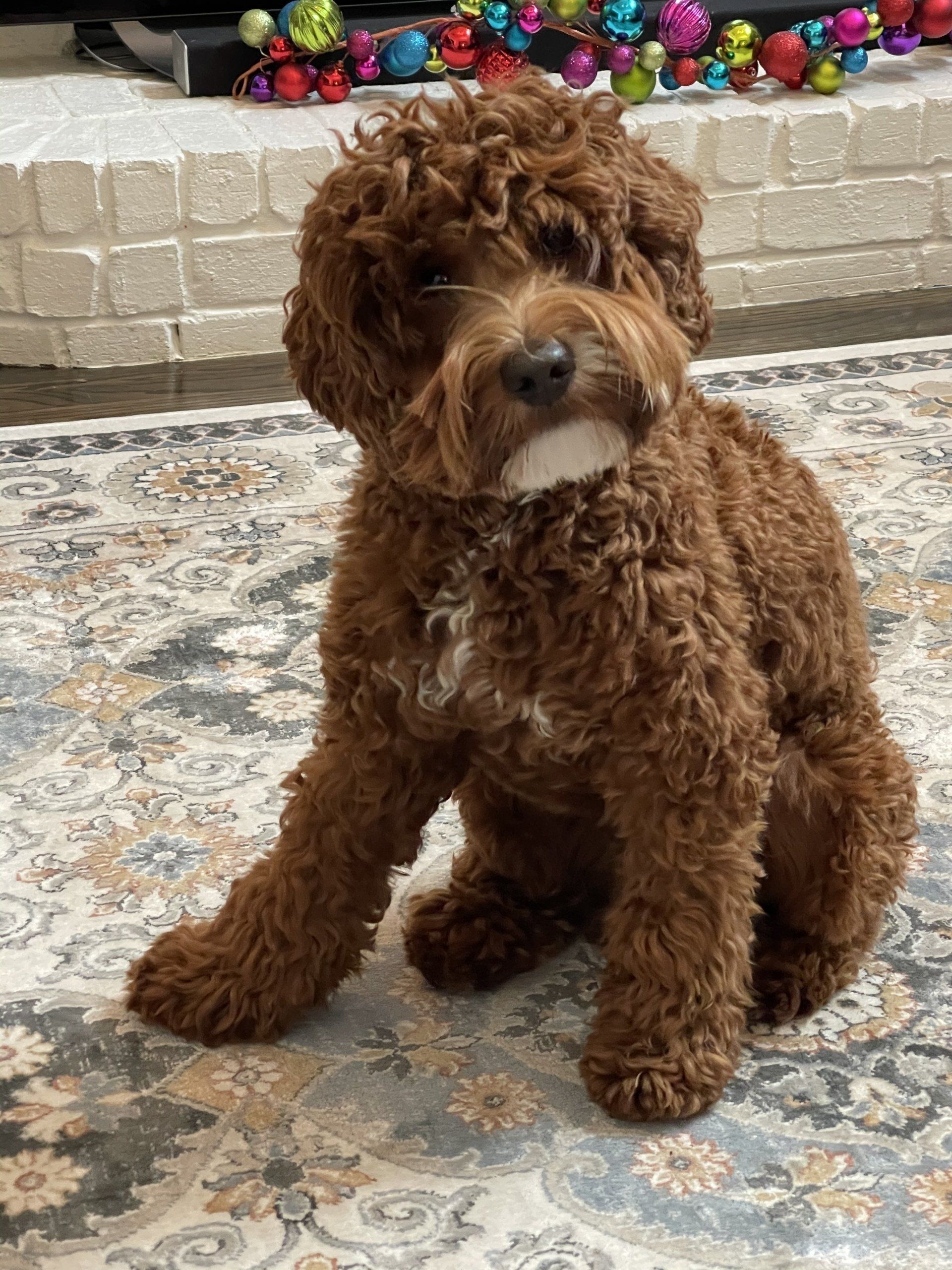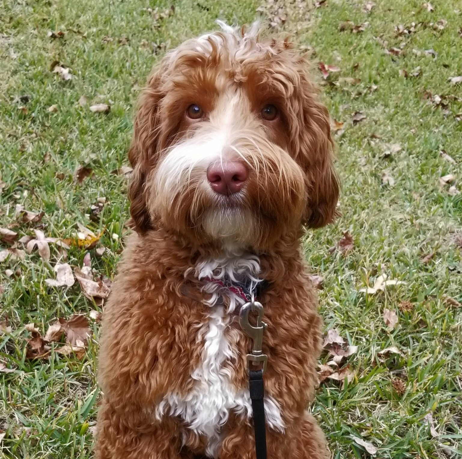 Tucker is our new boy. He comes to us from Labradoodles By Design in Nova Scotia. Tucker is a handsome Caramel boy. He is a medium and will probably be 36 to 38 lbs when finished growing. He carries for Parti and Phantom. He is clear and normal on his health testing. Tucker is a sweet loving boy who adores his guardian family.